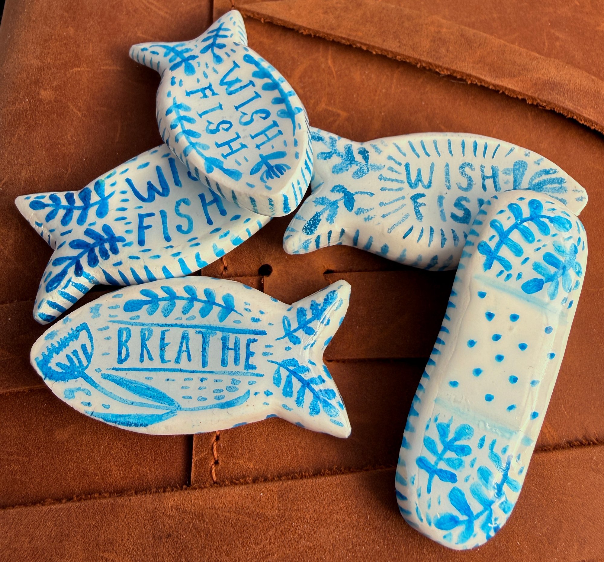 These hand made resincrete charms are designed to be tiny companions for everyday life. The Wish Fish have a smooth indent that you can rub easily between your fingers for comfort and gentle reassurance. Slip one into your pocket, keep it on your desk, or tuck it inside a bag as a gentle reminder to pause, breathe, and reset.